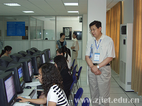 6月6日下午,评估组专家刘复国教授、贺星岳教授来到8号实验楼学生综合网站实训室,对信息技术系电子商务专业30名大三学生进行职业技能测试。