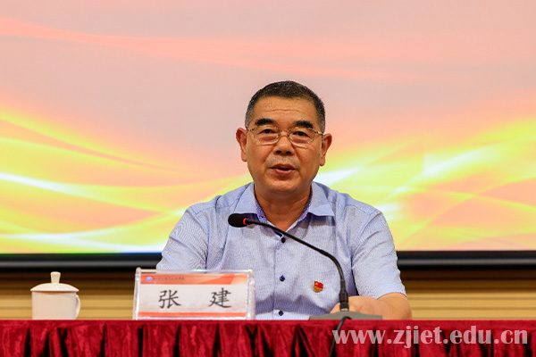 张建代表省供销社党委、理事会向学校全体教职员工致以节日的问候,充分肯定了近年来学校在人才培养、教学科研、社会服务等方面取得的成绩。他指出,国家对职业教育的高度重视和浙江省“两个先行”的奋斗目标为学校发展带来了难得的历史机遇,希望经贸学院从坚持加强党的全面领导、坚持人才强校战略、坚持立德树人根本任务、坚持紧贴行业发展等四个方面持续发力,扛起责任、抓住机遇、抢占高地,勇当新时代职教先锋,在全面建设社会主义现代化国家新征程中展现更大担当。