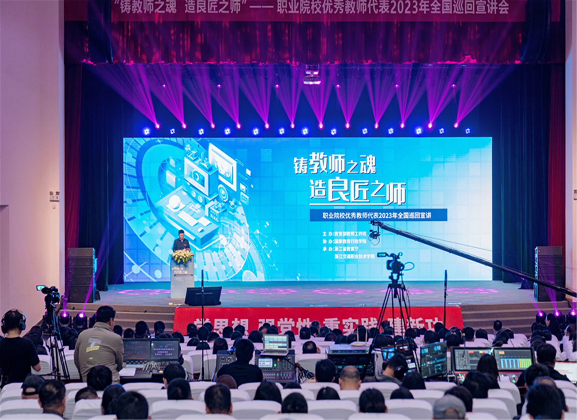 为深入贯彻落实党的二十大精神,推动职业教育教师队伍建设,营造全社会关心关注职业教育的良好氛围,5月22日上午,由教育部主办的“铸教师之魂·造良匠之师”职业院校优秀教师代表2023年全国首场巡回宣讲会在浙江交通职业技术学院举行。教育部教师工作司司长任友群,省教育厅副厅长汤筱疏出席活动并致辞。