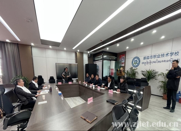 在西藏那曲市指挥部,劳赐铭围绕职业教育发展、产教融合、社会培训服务等方面介绍了学校的工作举措和成效。他表示,学校将不断提高政治站位,继续认真落实上级决策部署,坚决扛起“做好新时代对口援藏工作”的重大政治责任,积极对接那曲市经济社会发展需求,发挥自身办学优势,为浙江对口援藏工作再上新台阶贡献经贸力量。董旭斌介绍了西藏那曲市指挥部相关情况,对学校办学成果和对口援藏工作表示高度肯定,希望学校能够创新援藏工作思路和模式,在社会培训、高技能人才培养等方面持续助力那曲市经济社会发展。
